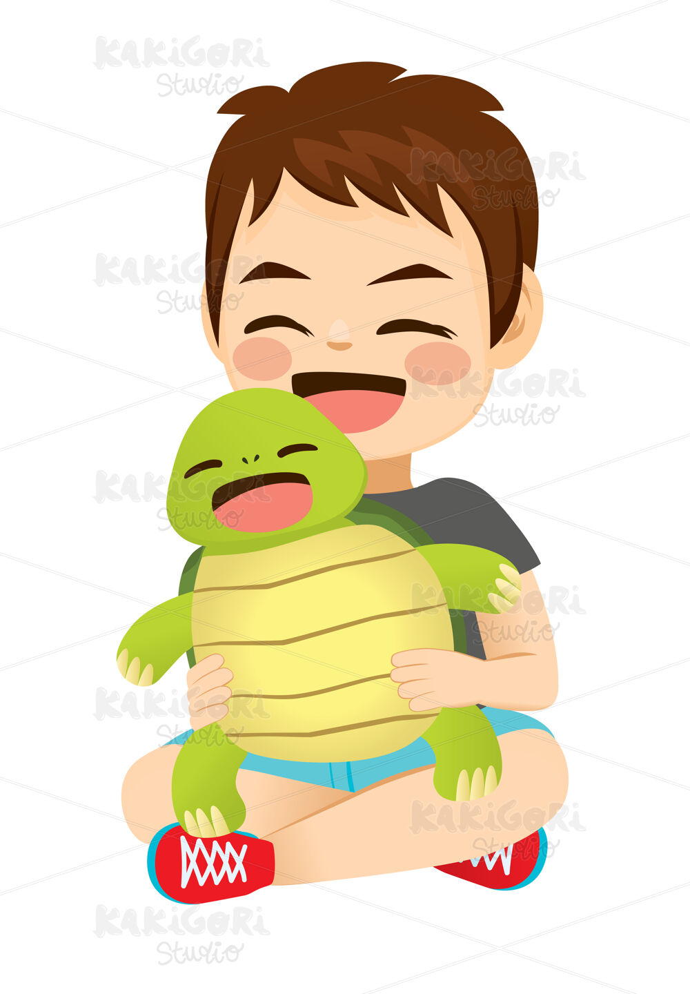 / Little Boy Holding Pet Turtle Clipart Vector Illustration 04885