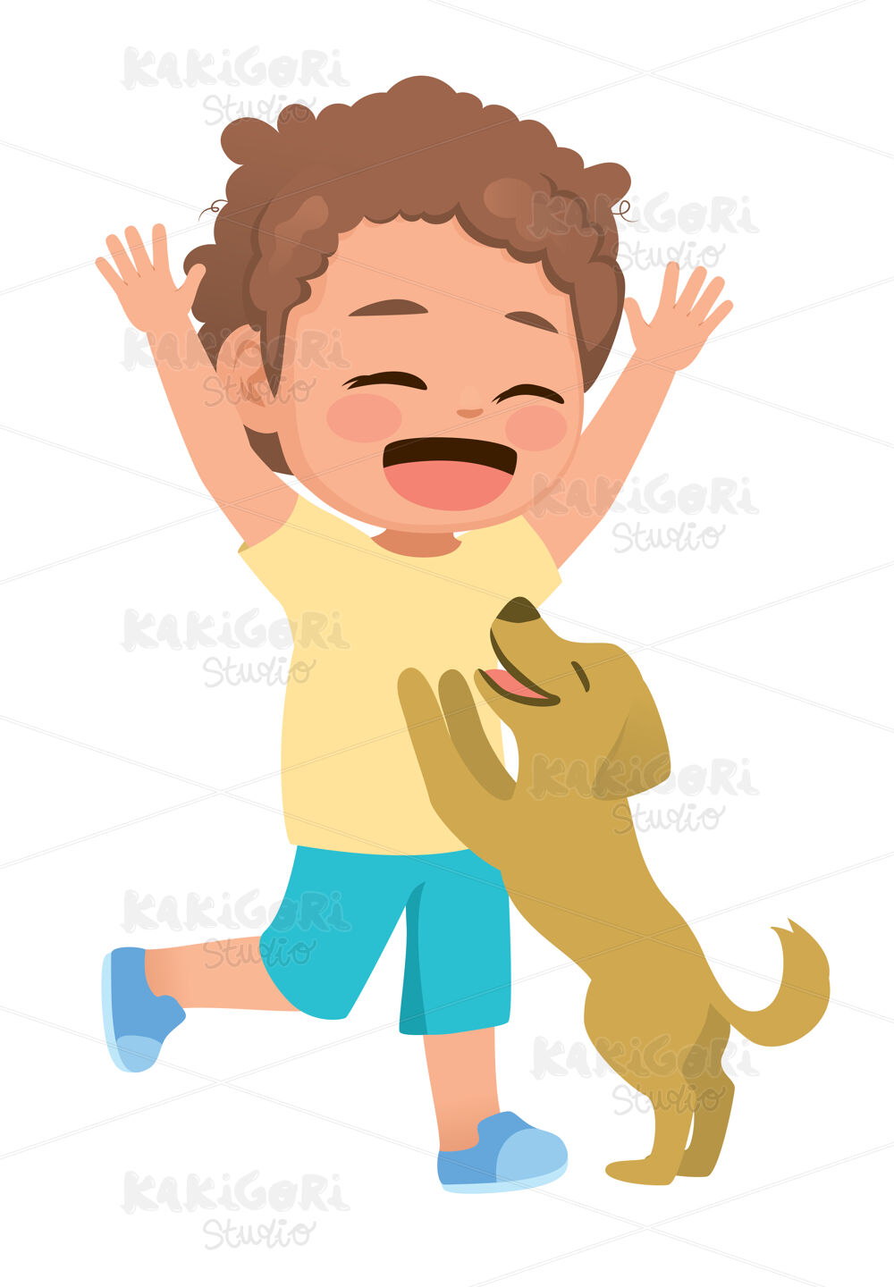 / Little Boy With Pet Dog Clipart Vector Illustration 04888