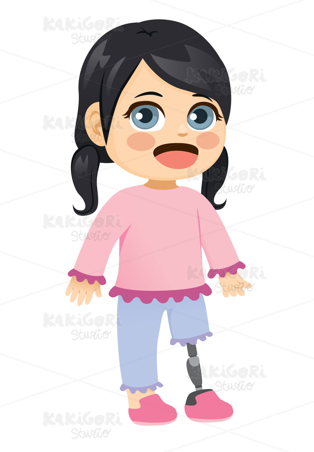 / Little Girl With Prosthetic Leg Clipart Vector Illustration 04872