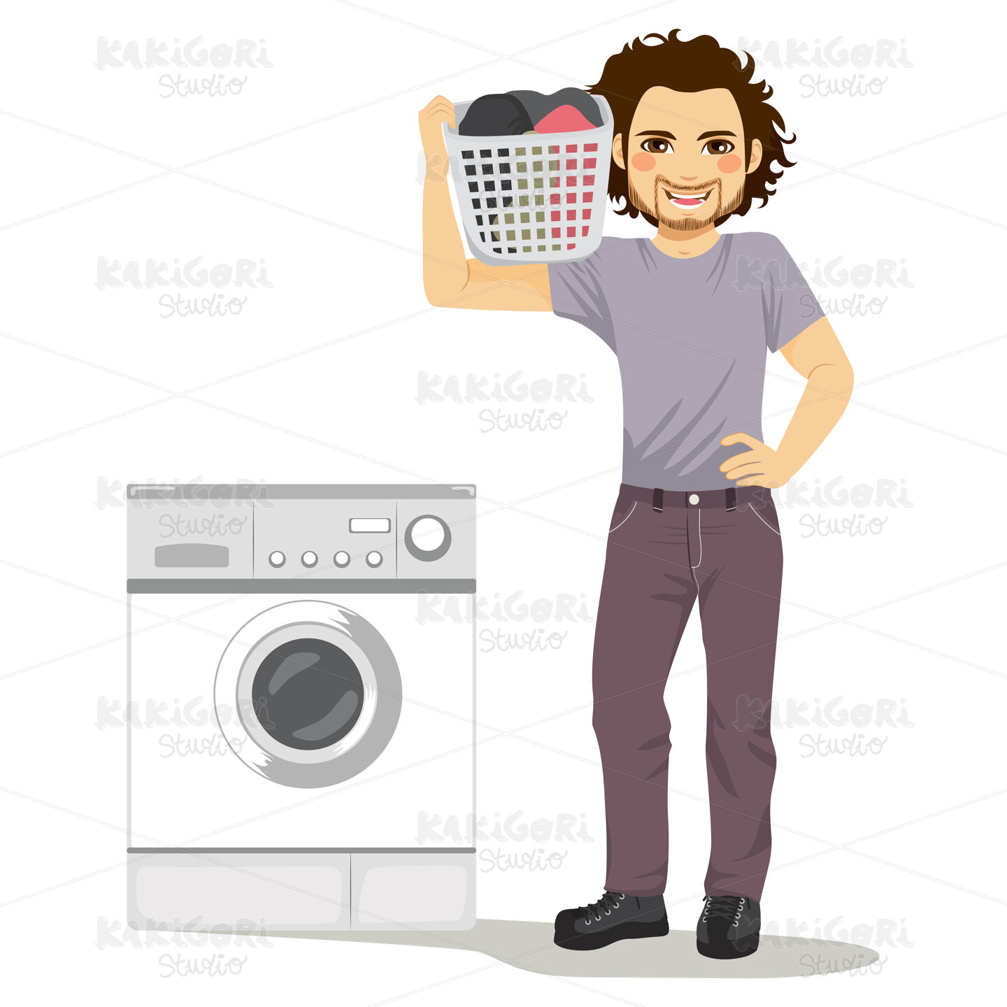 / Man Doing Laundry Clipart Vector Illustration 03530