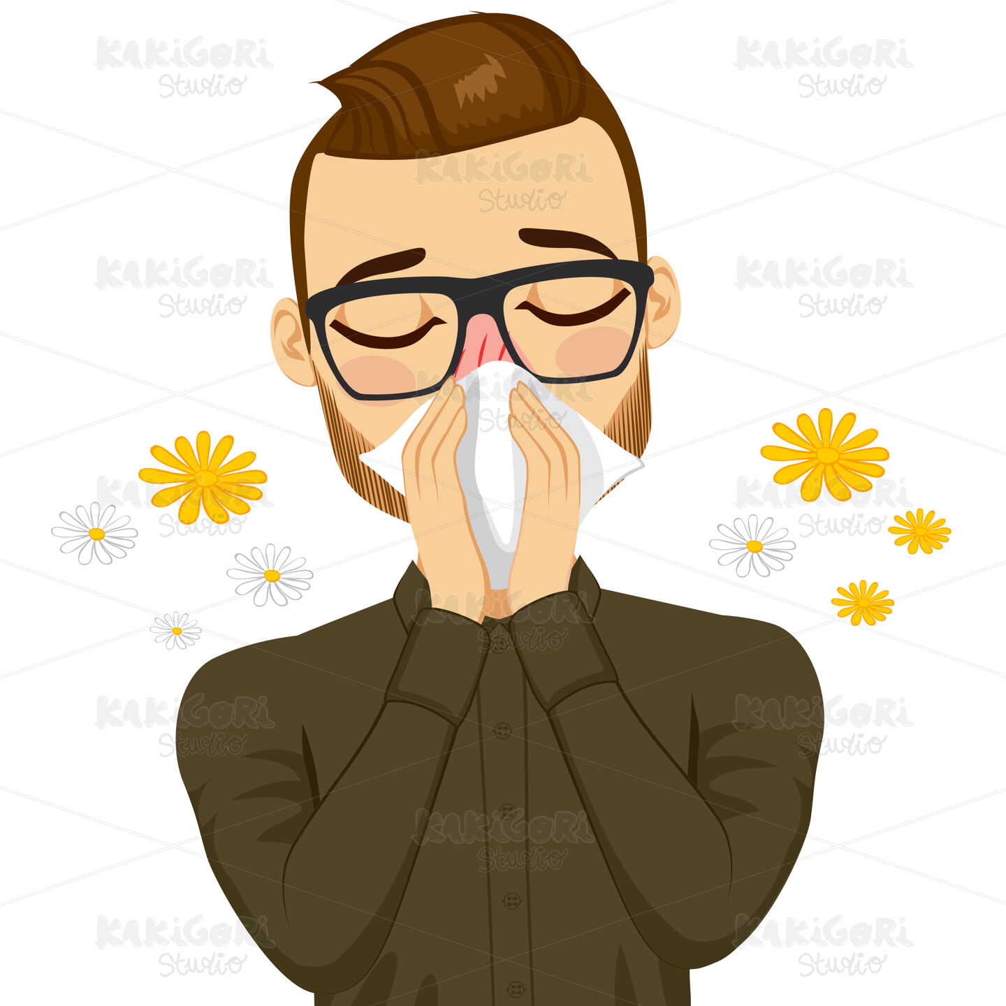 / Man Suffering Spring Allergy Clipart Vector Illustration 02012