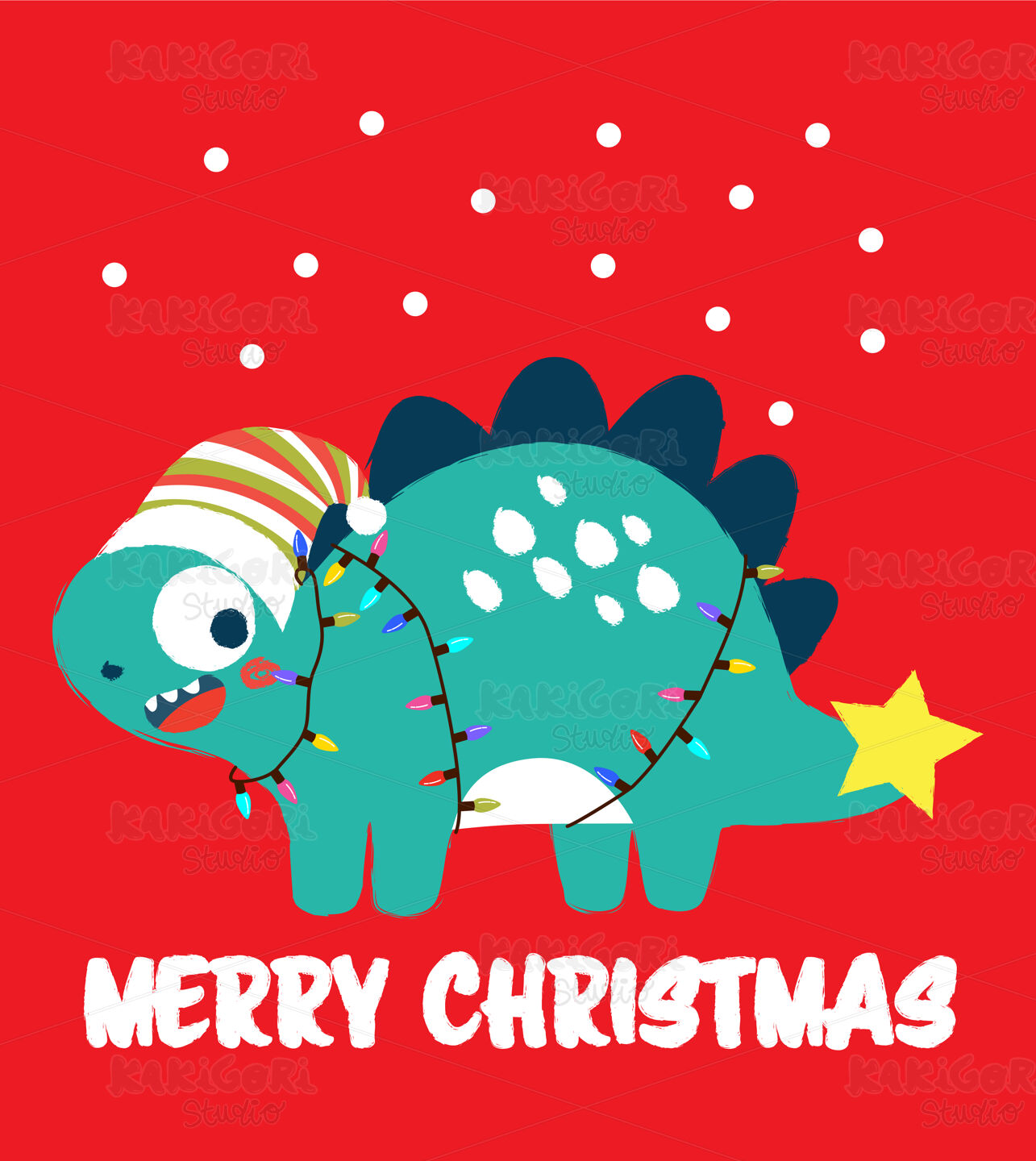 / Merry Christmas Dinosaur Clipart Vector Illustration 05204