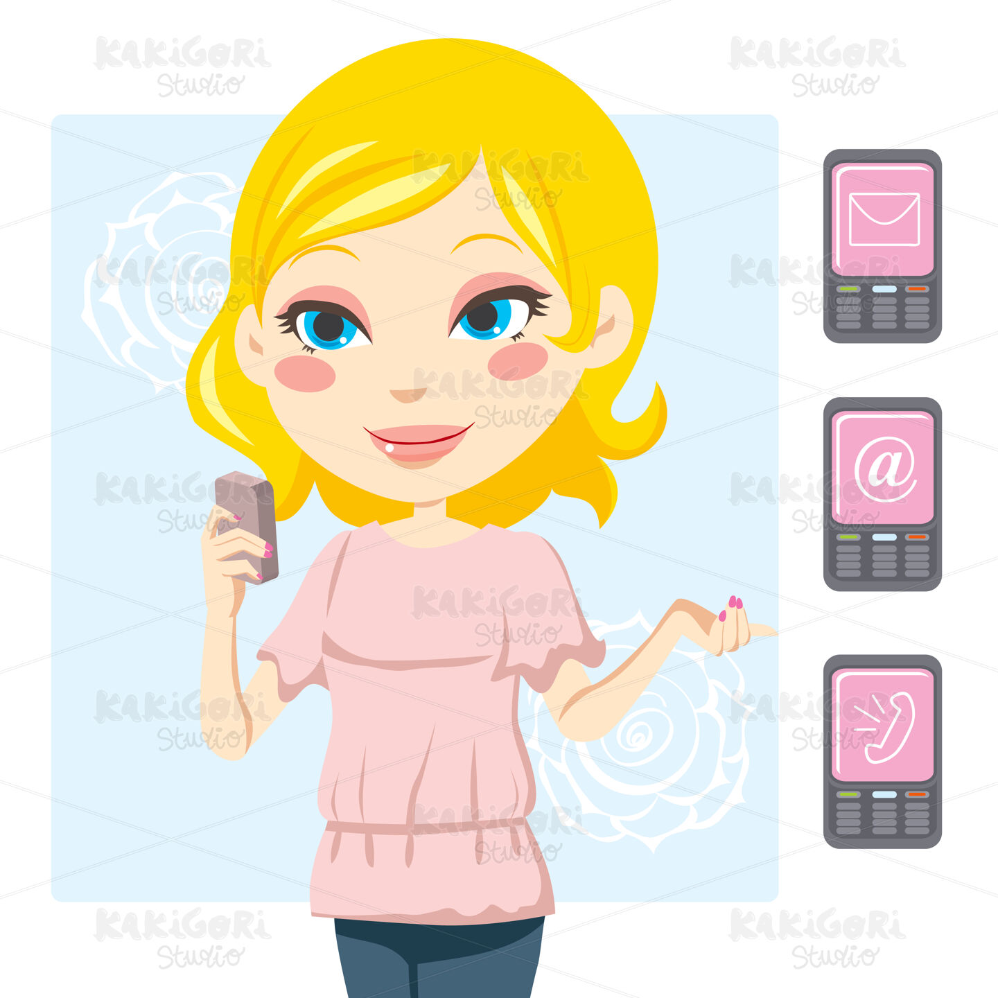 / Mobile Phone Woman Clipart Vector Illustration 00360