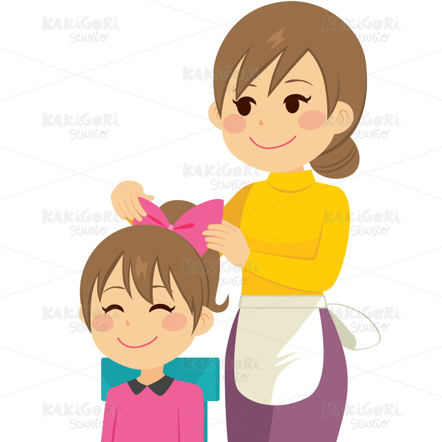 / Mother Combing Hair Clipart Vector Illustration 03392