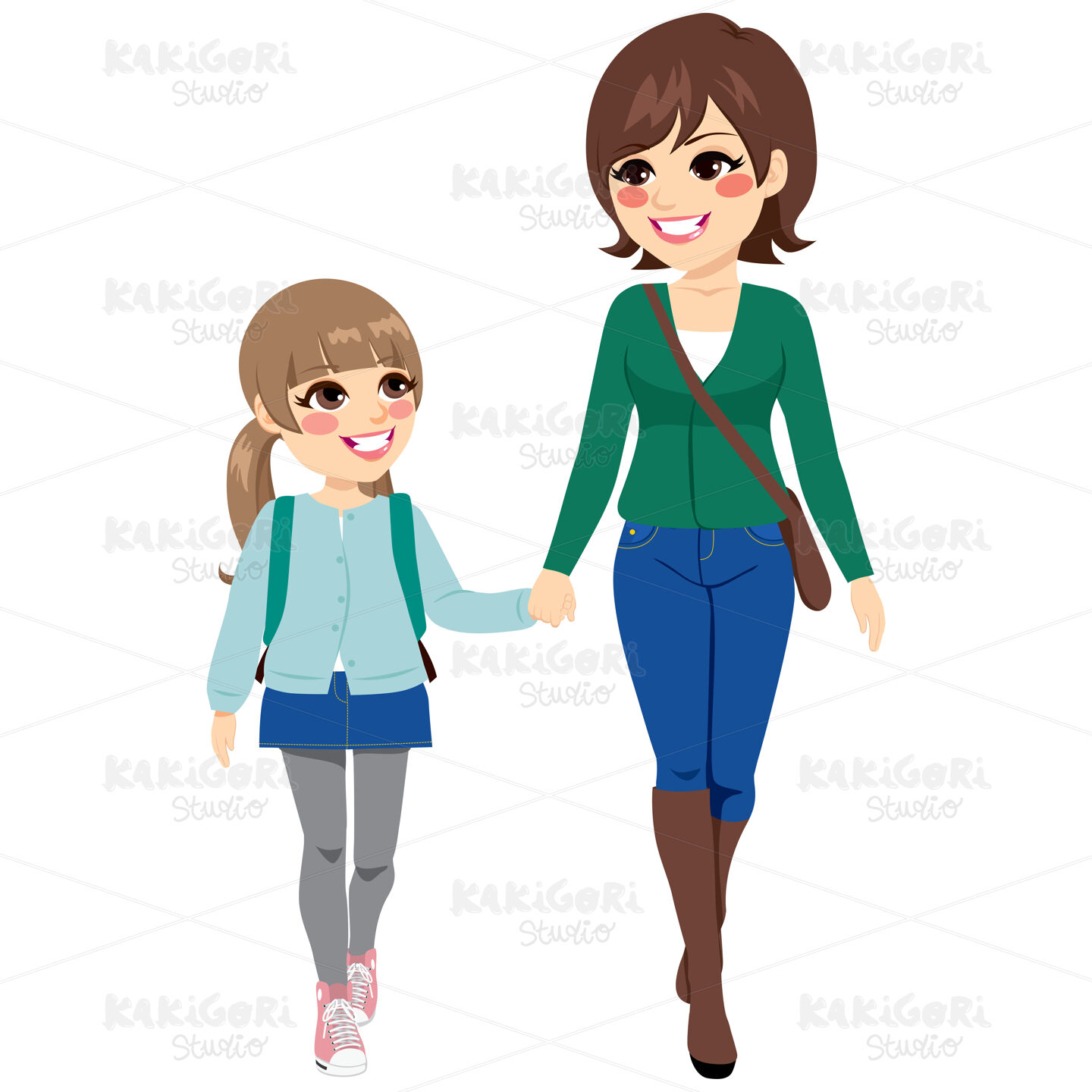 / Mother Daughter Going School Clipart Vector Illustration 02955