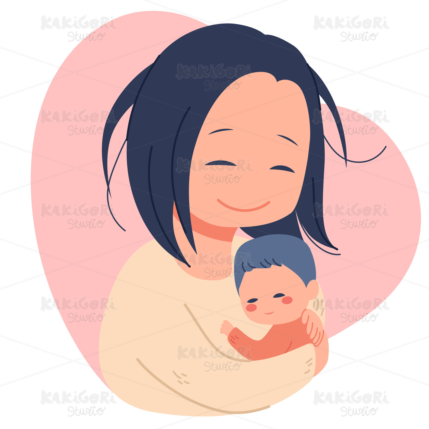 Illustration of lovely mother holding newborn baby with care