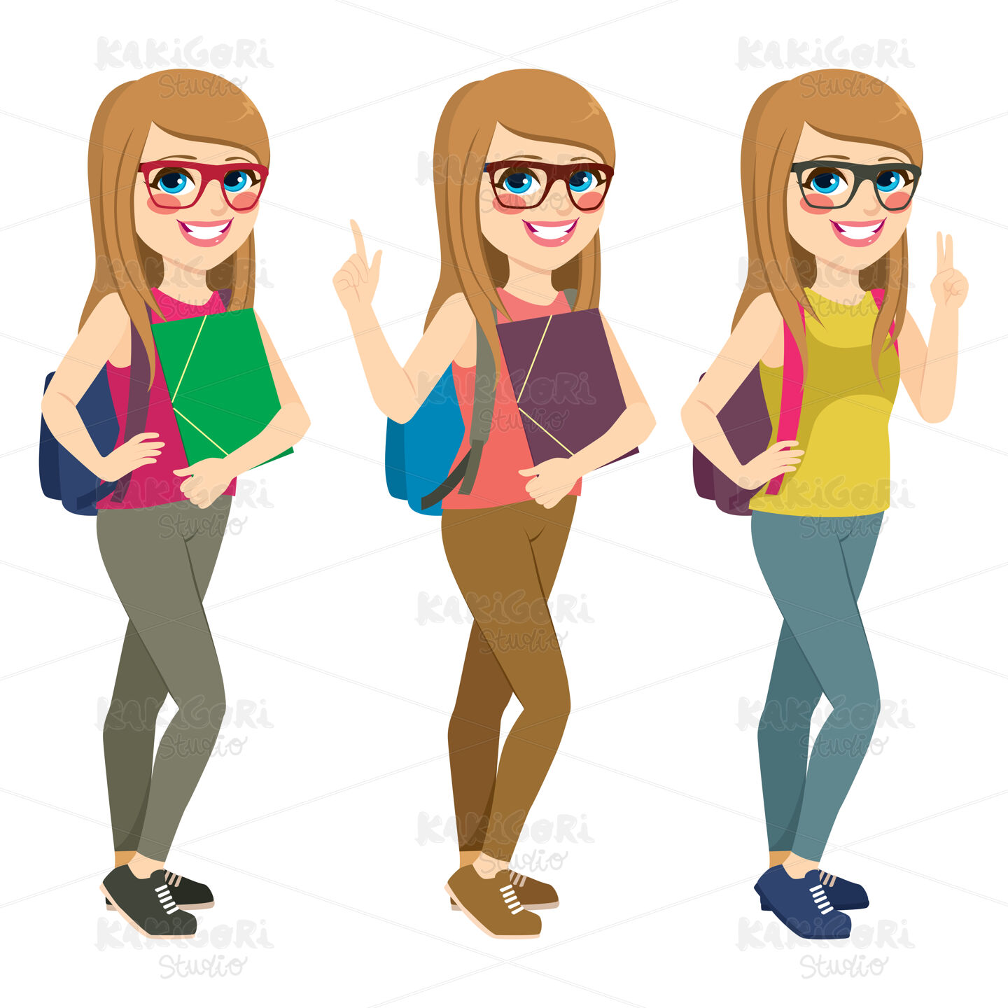 / Nerd Student Girl Standing Clipart Vector Illustration 04228