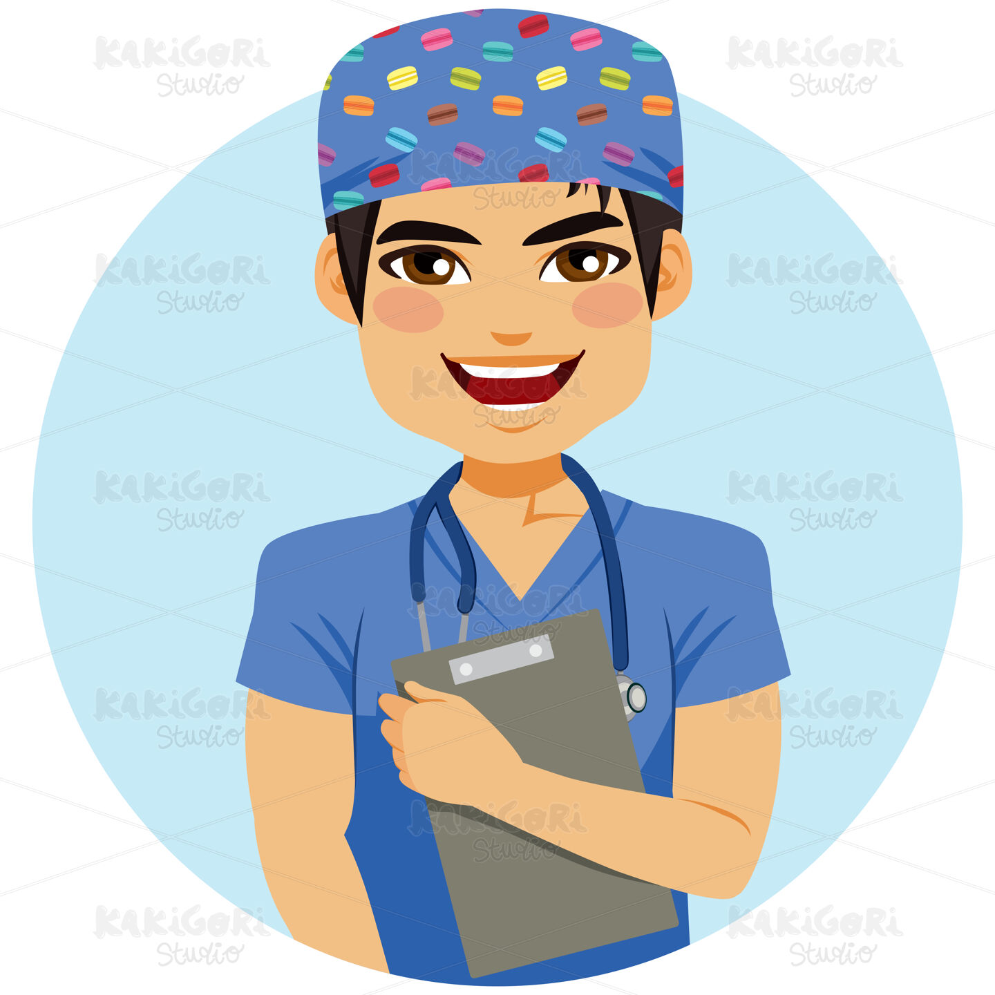 Happy young nurse man with stethoscope wearing blue uniform and pattern hat