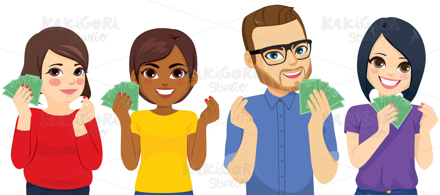 / People Showing Cash Money Gesturing Clipart Vector Illustration 05186