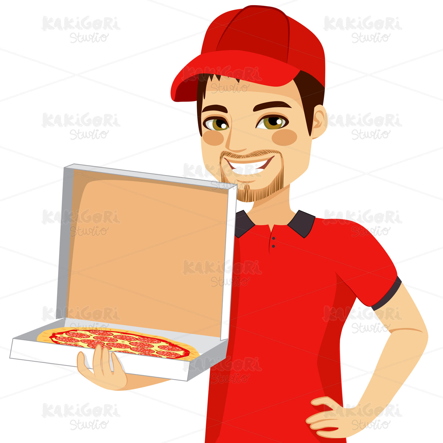/ Pizza Delivery Man Holding Box Clipart Vector Illustration 02138