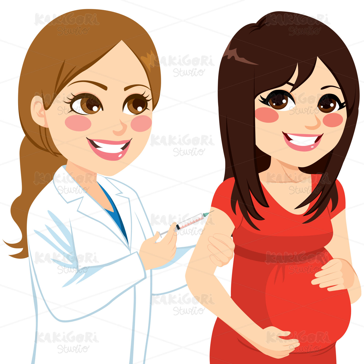 Beautiful young pregnant woman getting vaccine shot on her arm by lovely professional female obstetrician
