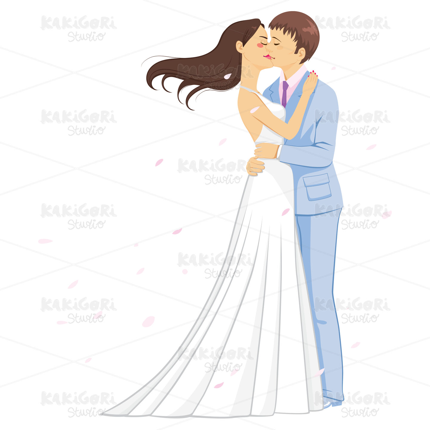 / Romantic Wedding Kissing Clipart Vector Illustration 03245