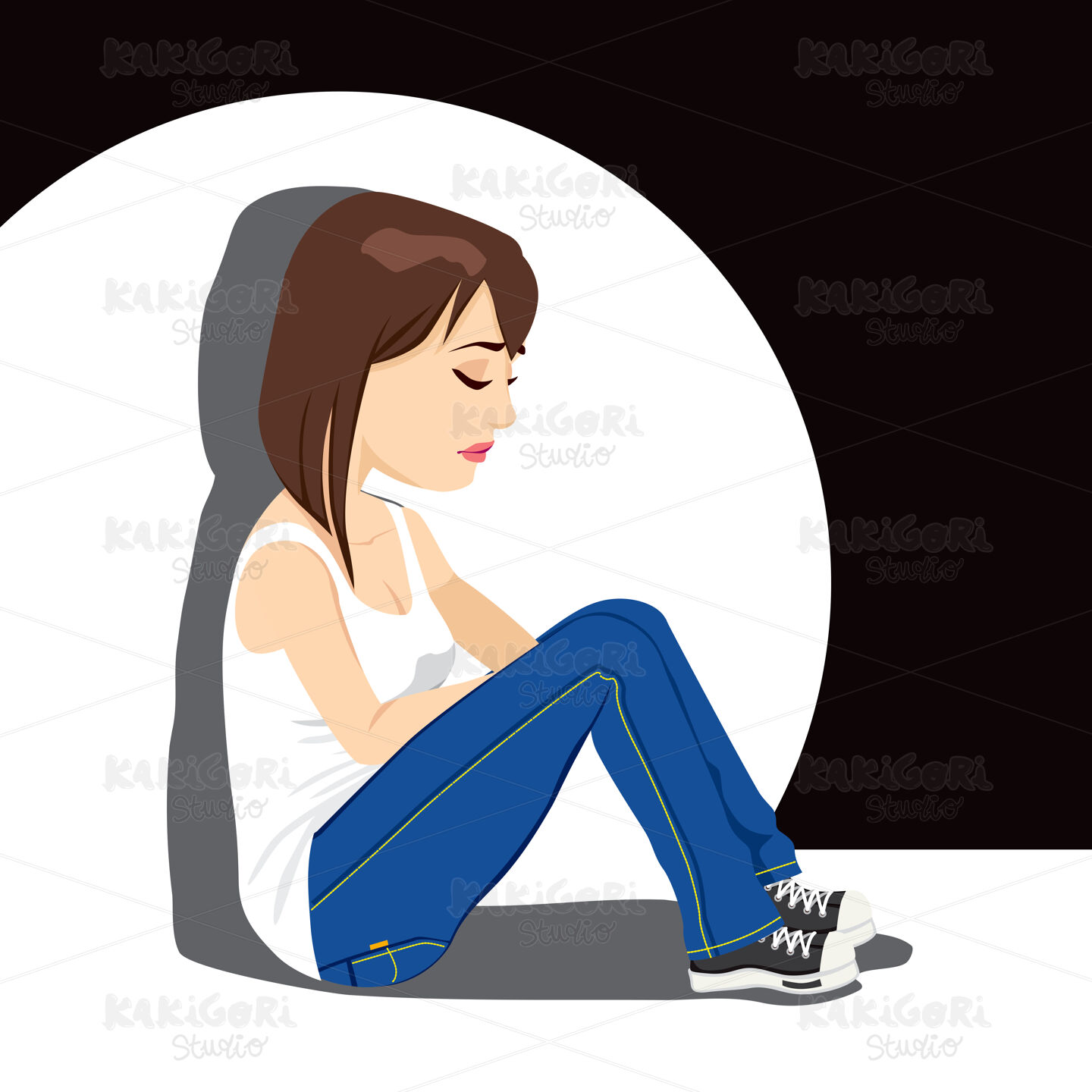 / Sad Teenager Girl Crying Clipart Vector Illustration 01662