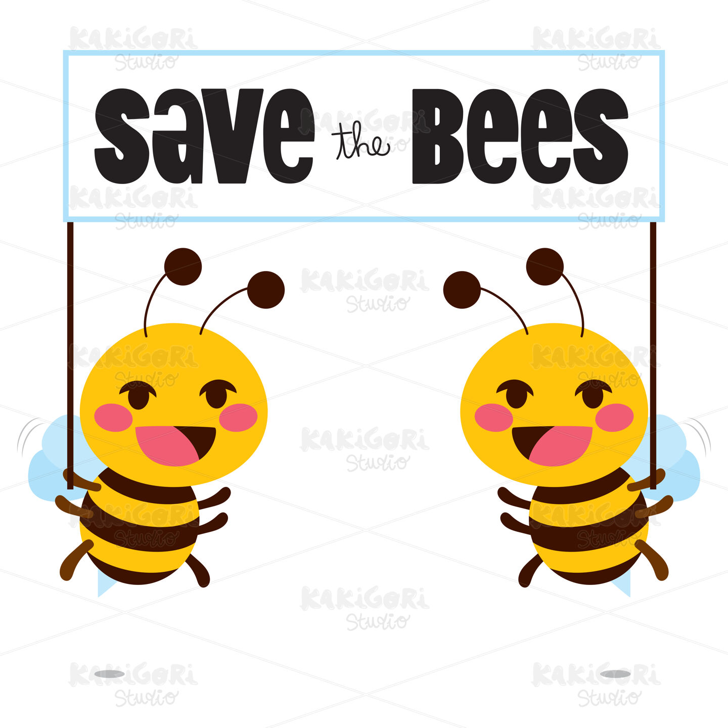 Funny flat color style illustration of two cute bees on protest save the bees concept