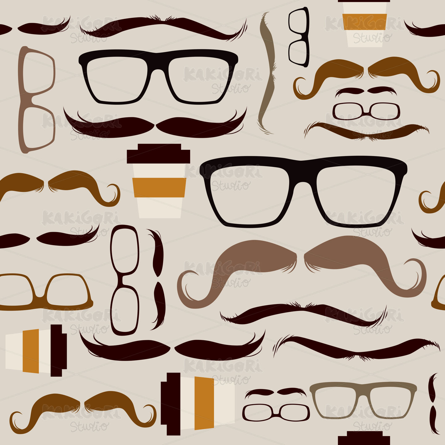 Seamless pattern background with different hipster glasses mustaches elements