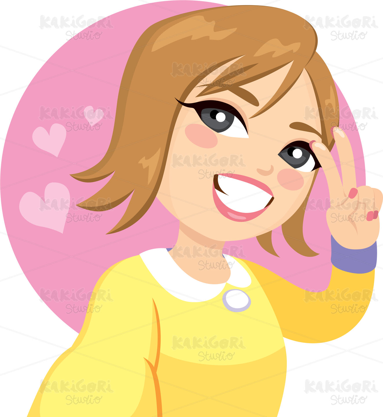 / Selfie Smile Woman Victory Sign Clipart Vector Illustration 04802