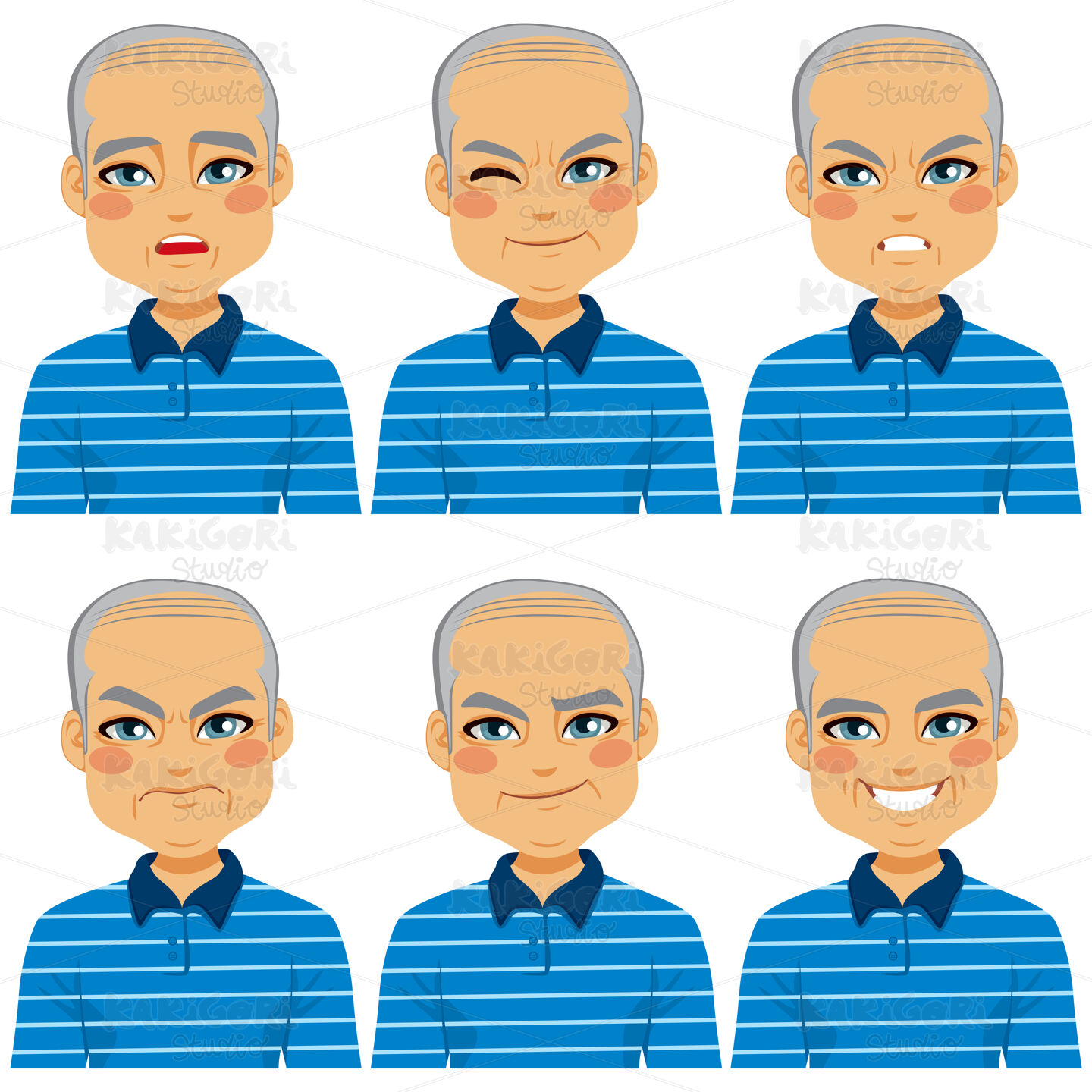 / Senior Bald Man Face Expressions Clipart Vector Illustration 02393