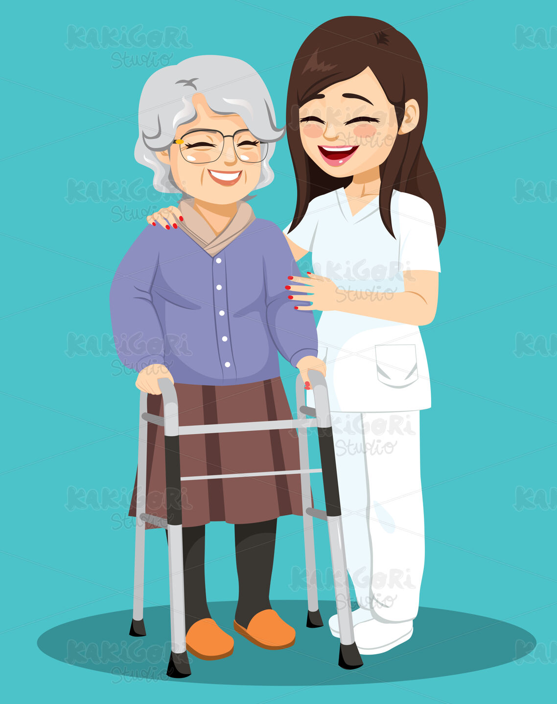 / Senior Woman Female Nurse Help Clipart Vector Illustration 04972