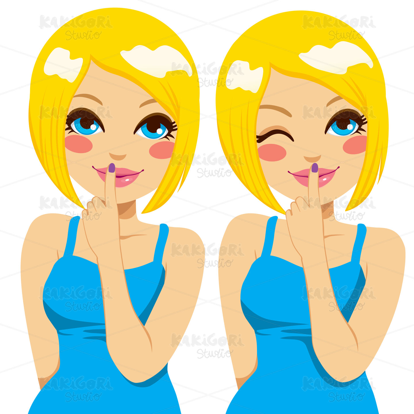 Sexy blonde woman with finger on lips making a secret expression or silence gesture and winking one eye