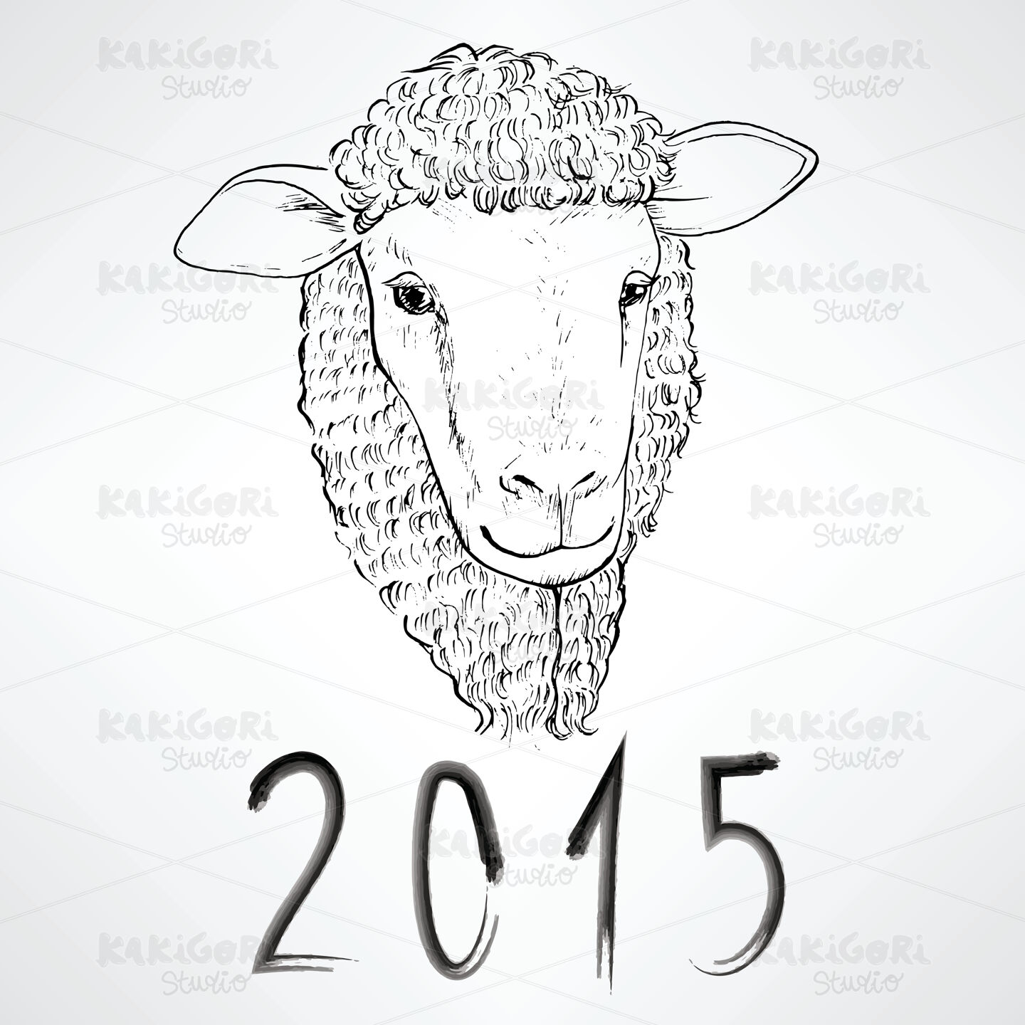 Black ink realistic sheep portrait drawing with 2015 text for Chinese New Year