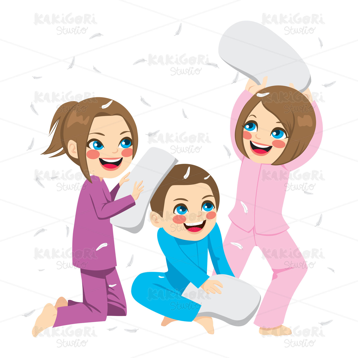 / Siblings Pillow Fight Clipart Vector Illustration 04763