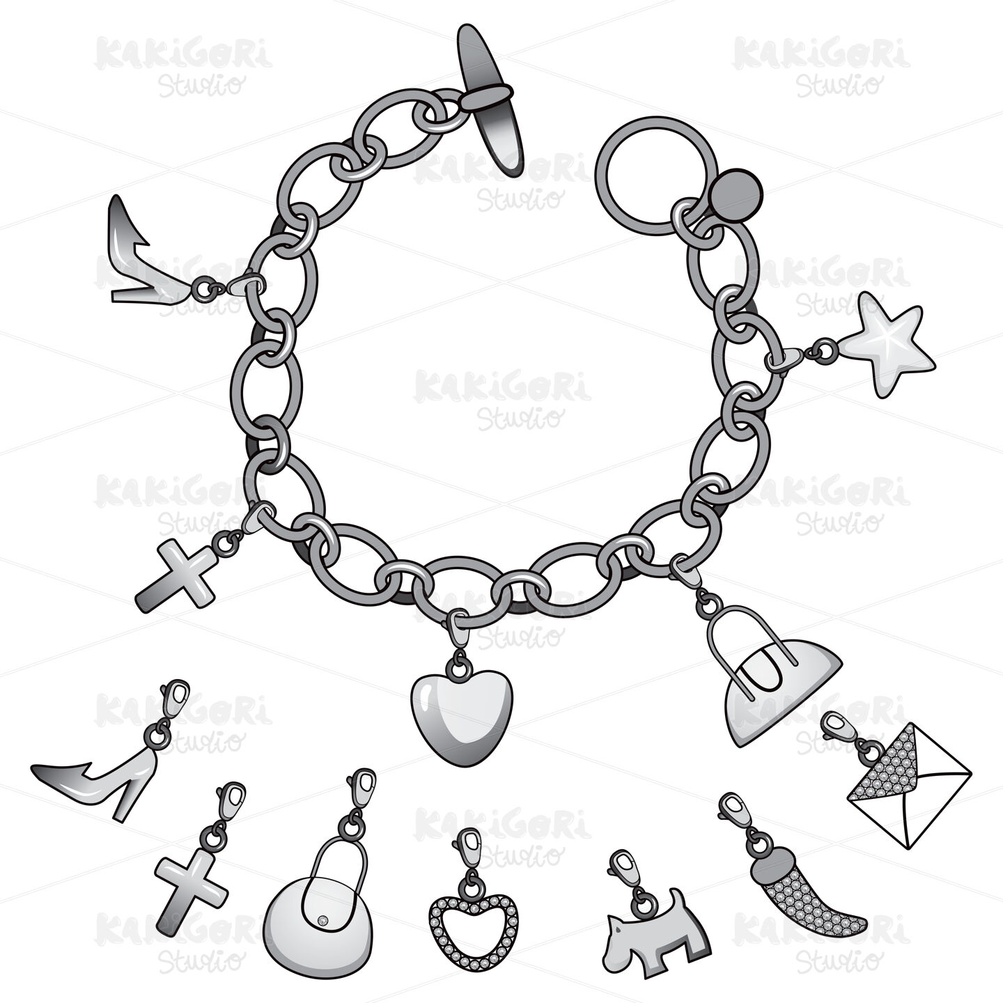 / Silver Charms Bracelet Clipart Vector Illustration 01593