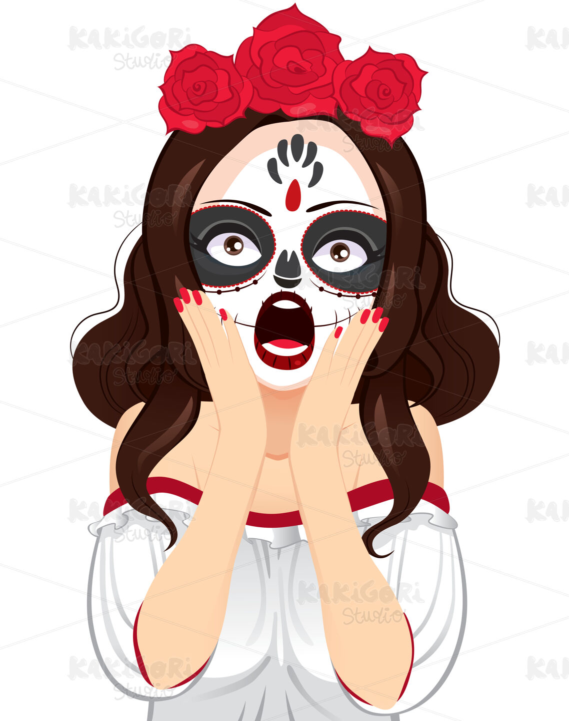 / Skull Painting Woman Shouting Clipart Vector Illustration 04919