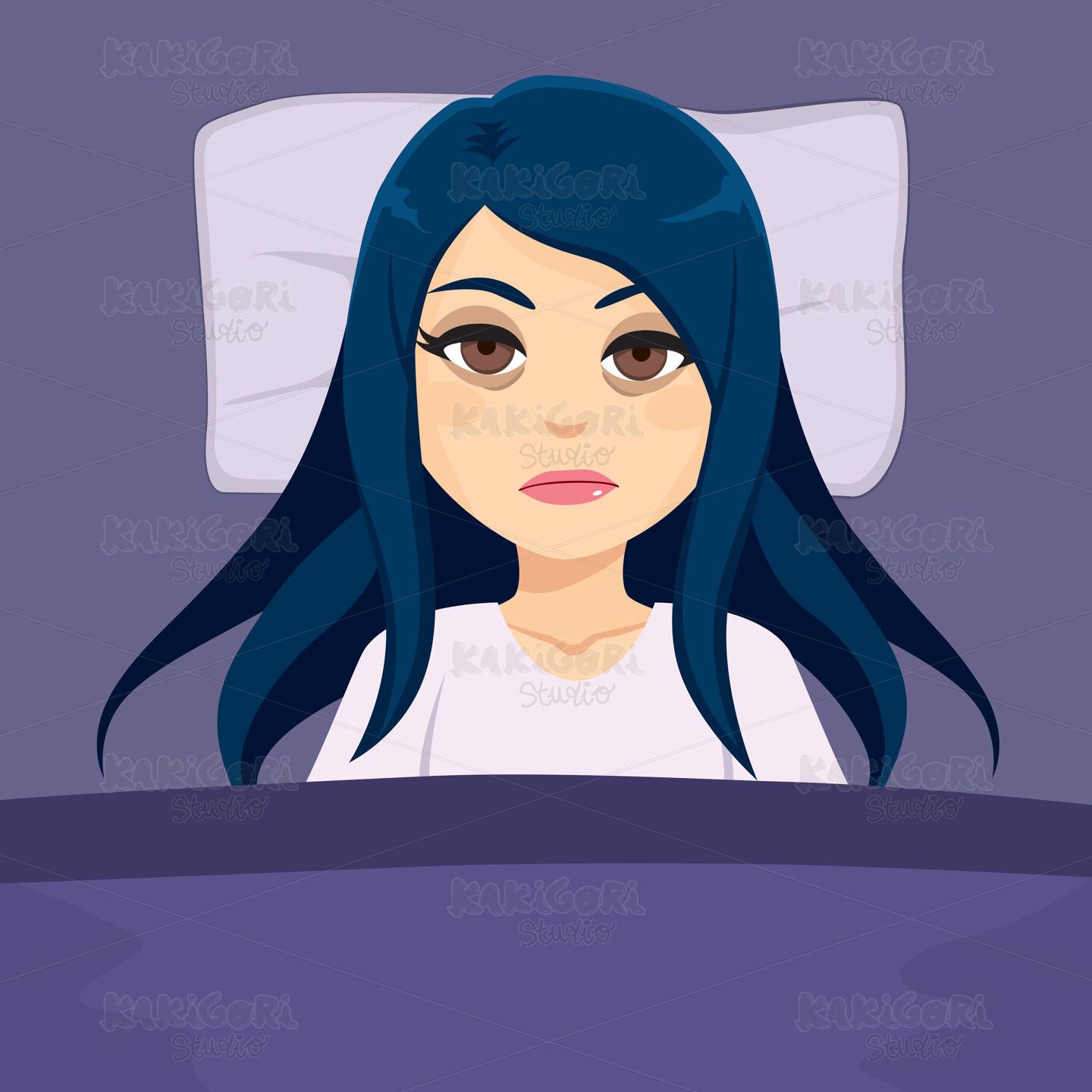 / Sleepless Girl Insomnia Clipart Vector Illustration 04765