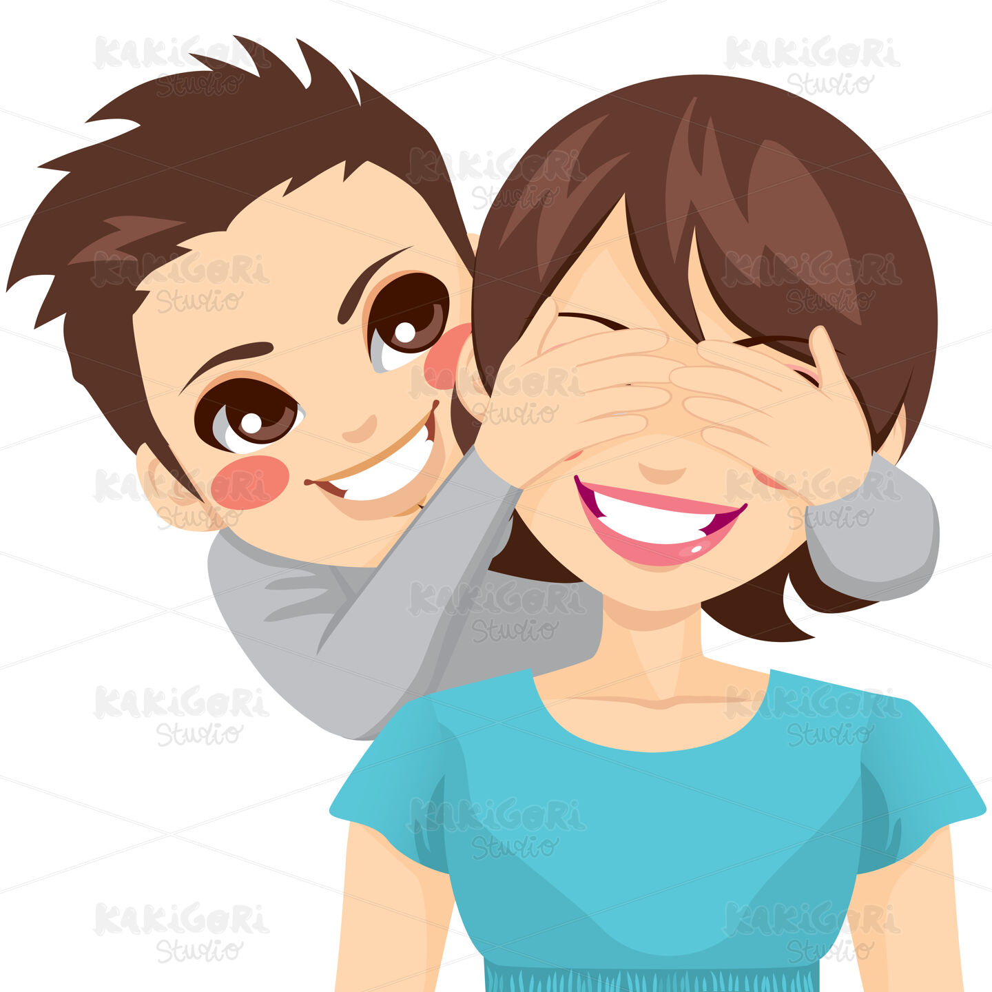 / Son Covering Mother Eyes Clipart Vector Illustration 01524