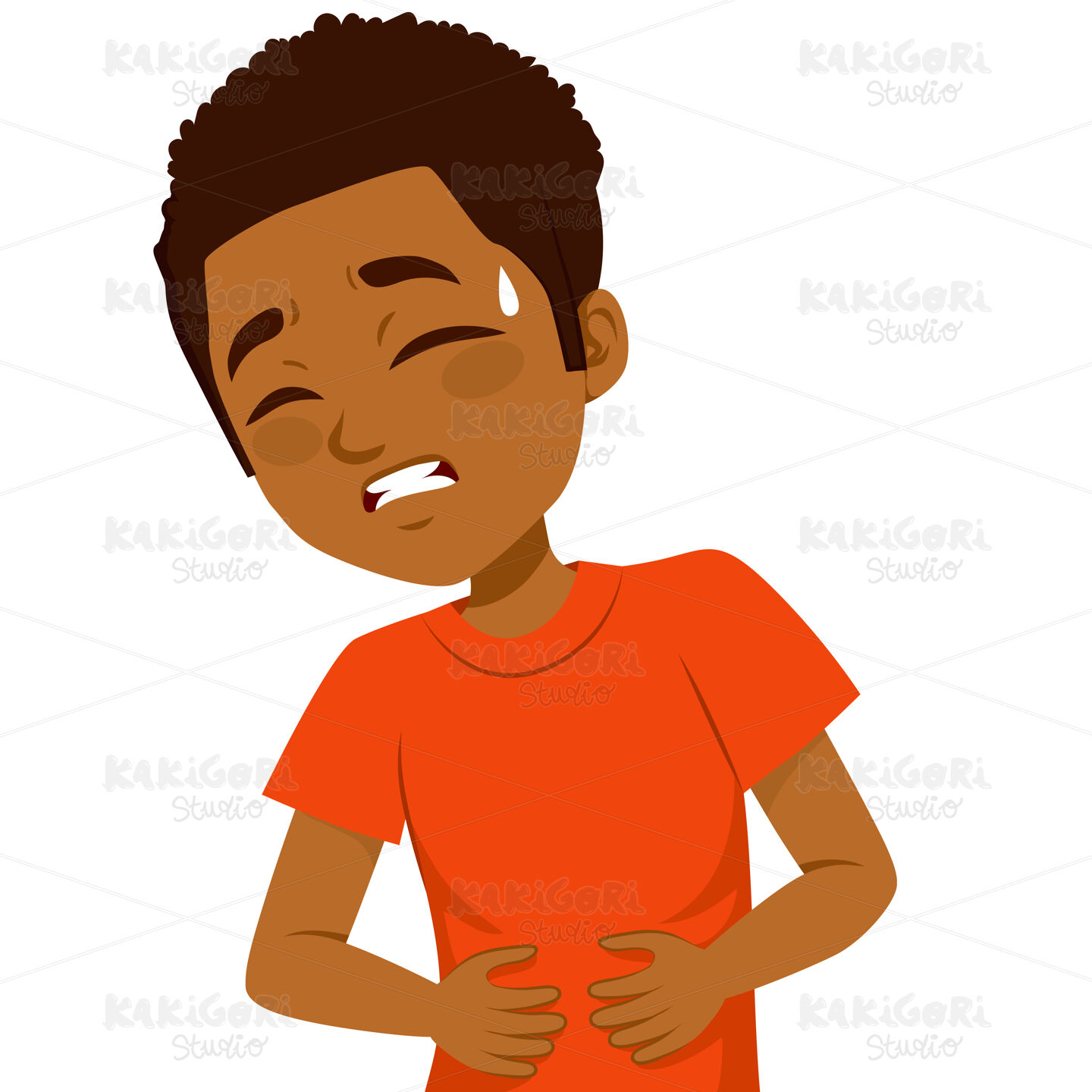 / Stomachache Pain Boy Clipart Vector Illustration 02801