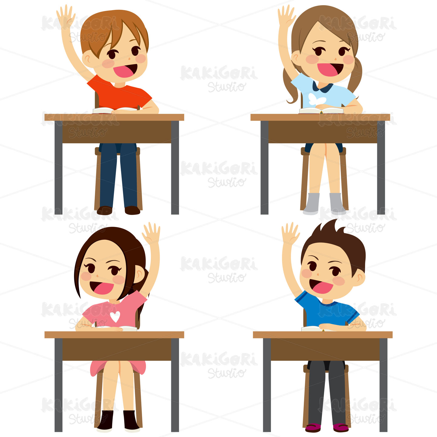 / Students Sitting Desks Clipart Vector Illustration 02930