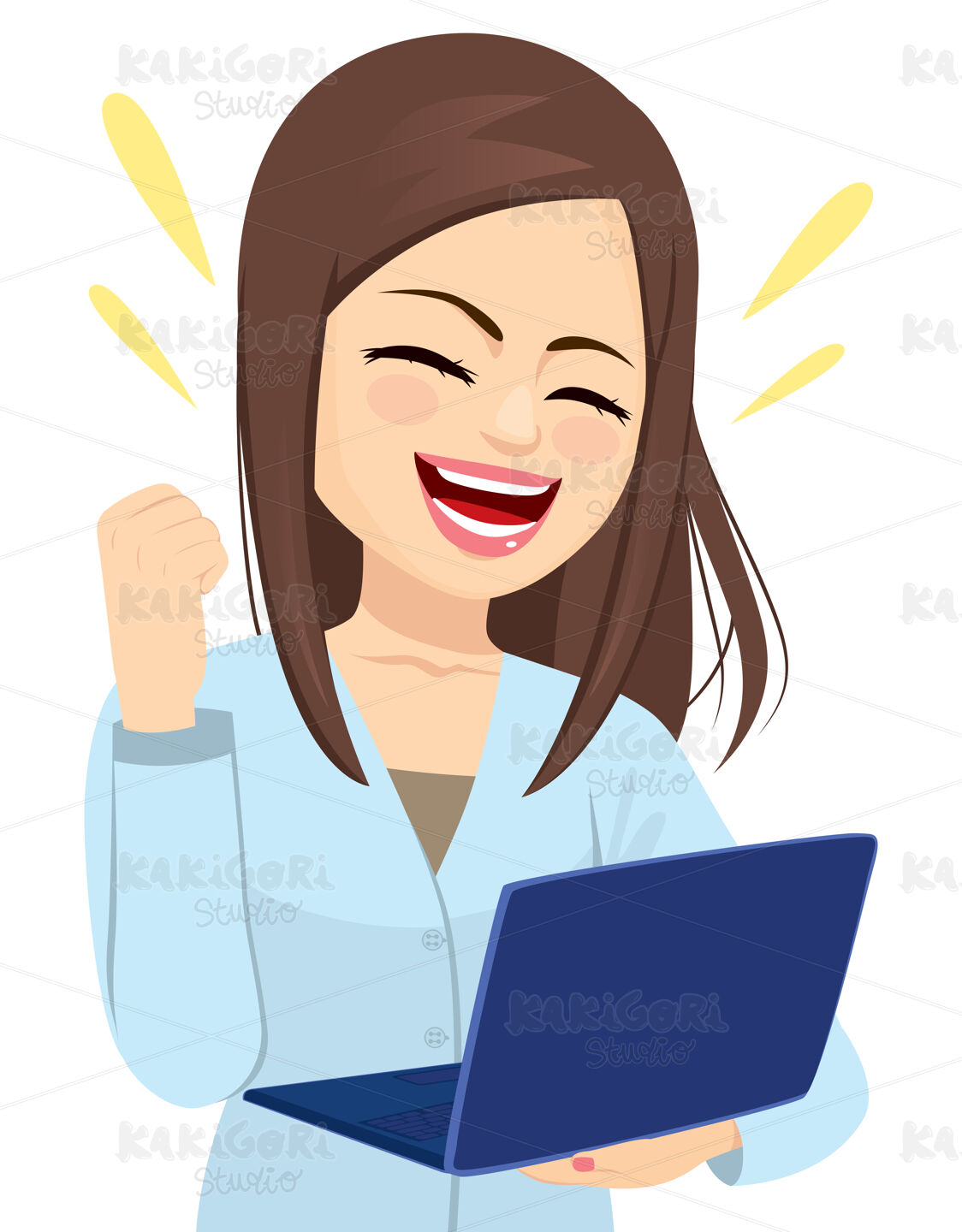 / Successful Businesswoman Fist Up Laptop Clipart Vector Illustration 04928