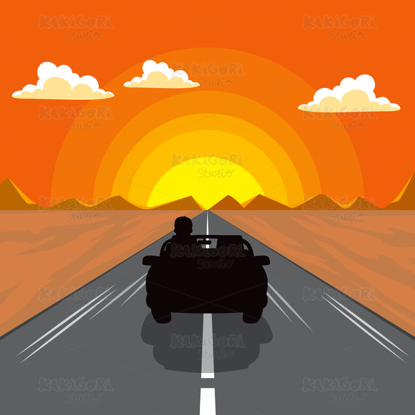 / Sunset Car Silhouette Clipart Vector Illustration 02990