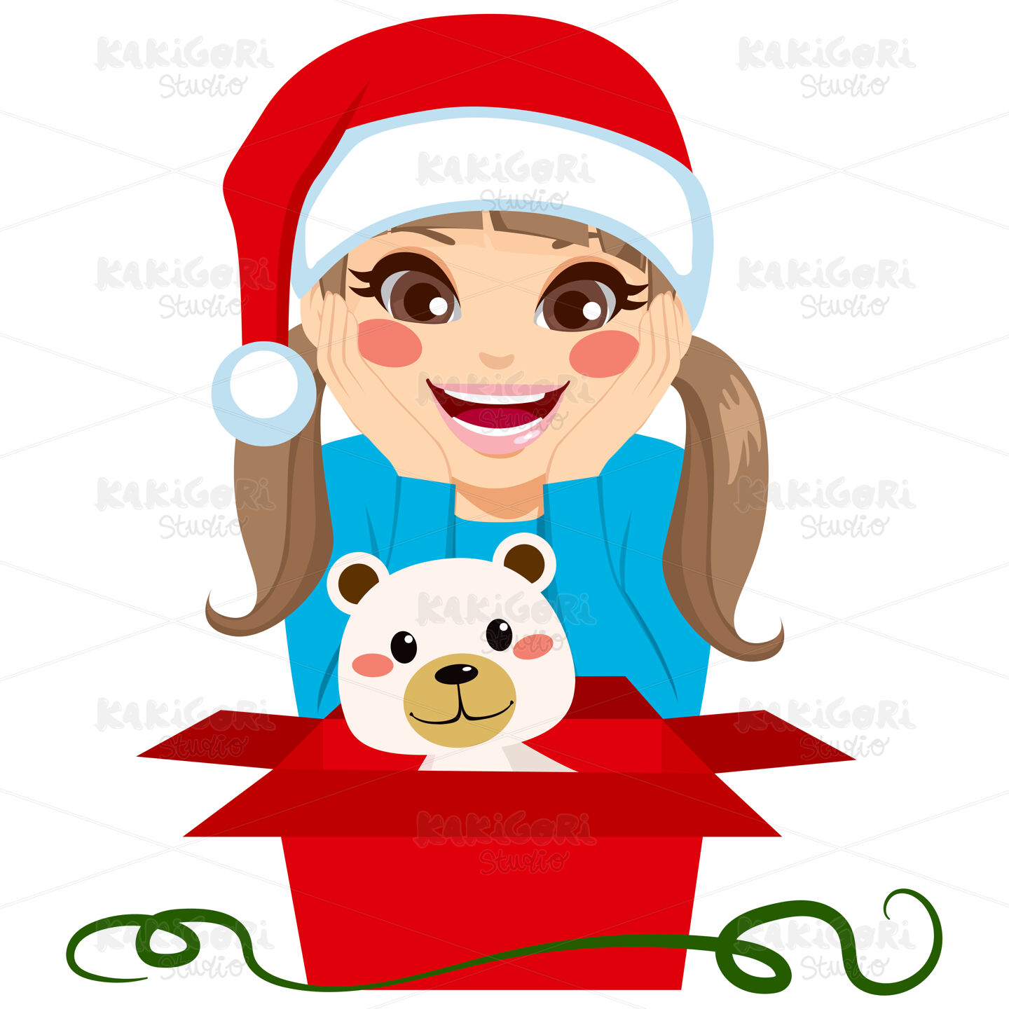 / Surprised Girl Opening Present Clipart Vector Illustration 01900