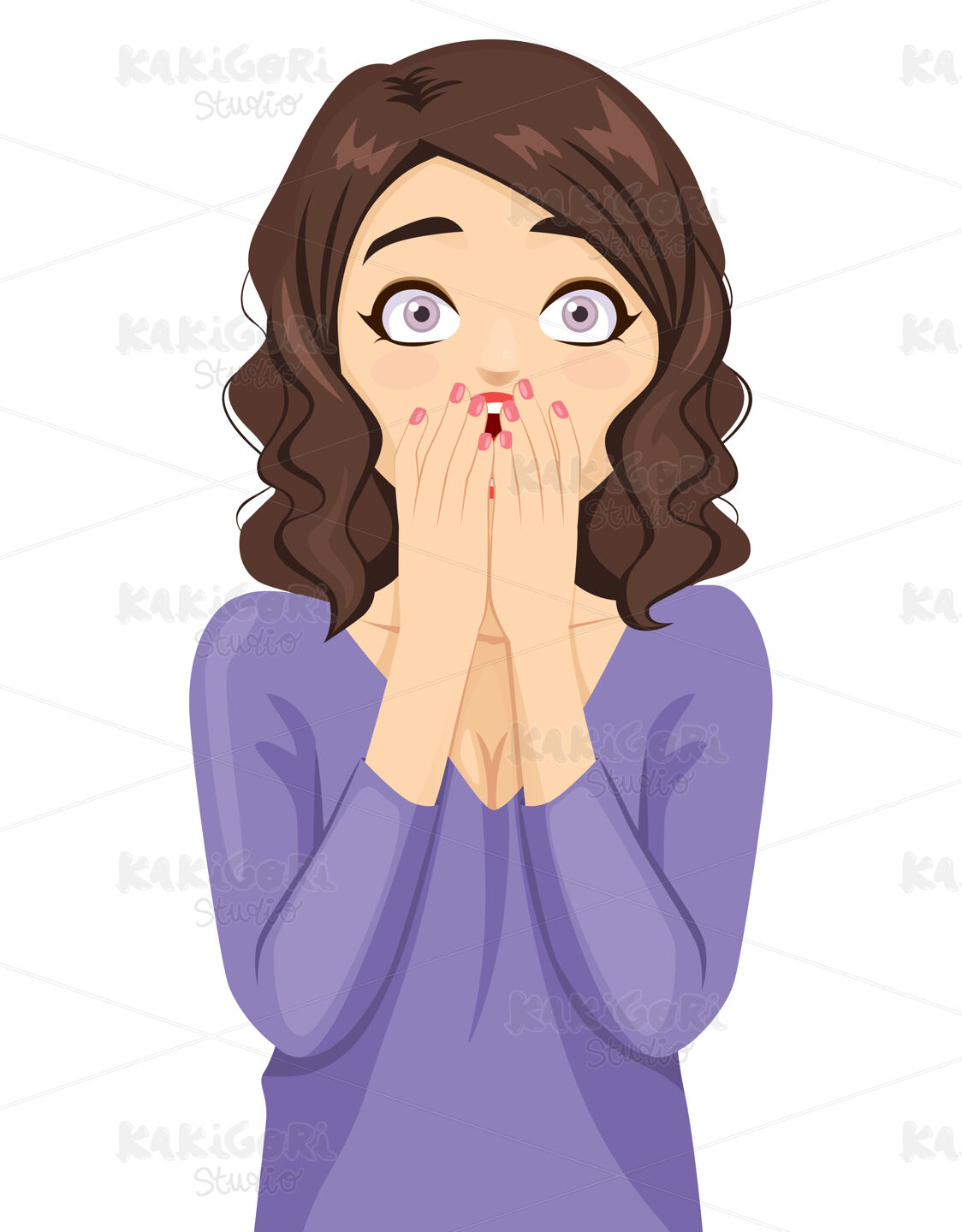 / Surprised Woman Covering Mouth Clipart Vector Illustration 04833