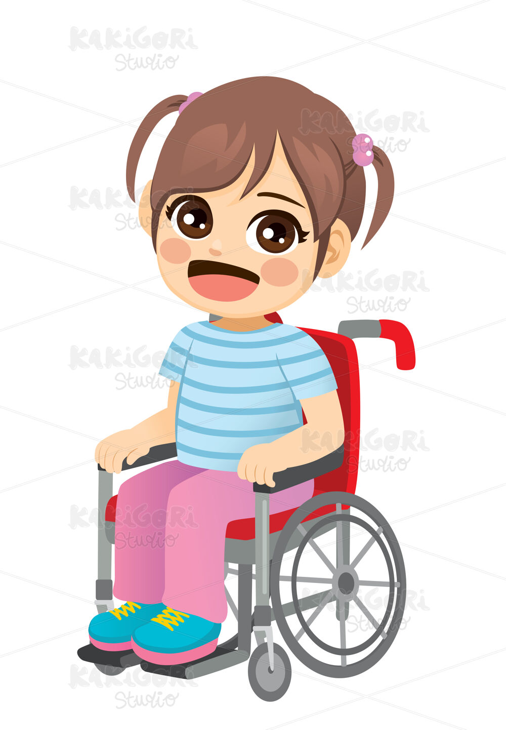 / Sweet Little Girl On Wheelchair Clipart Vector Illustration 04878