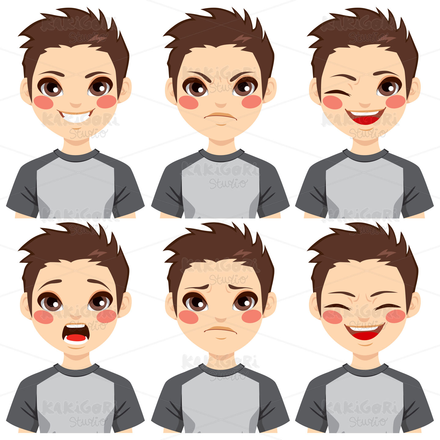 / Teenage Boy Face Expressions Clipart Vector Illustration 02384