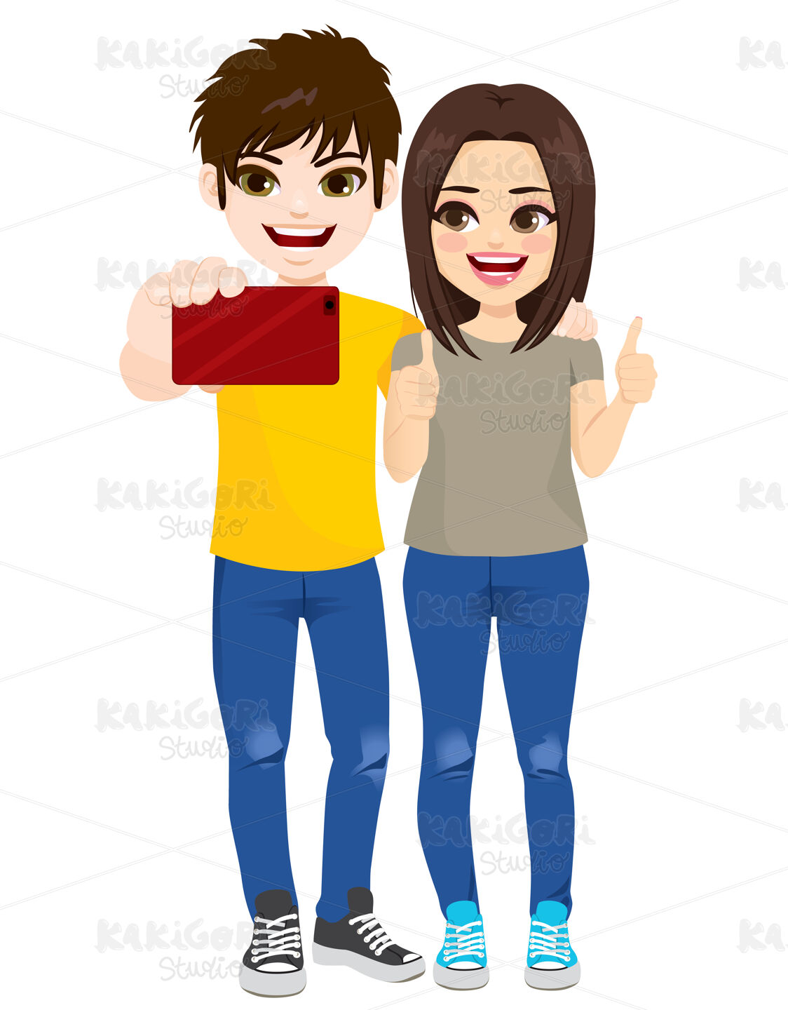 / Teenager Boy Girl Taking Selfie Clipart Vector Illustration 04853