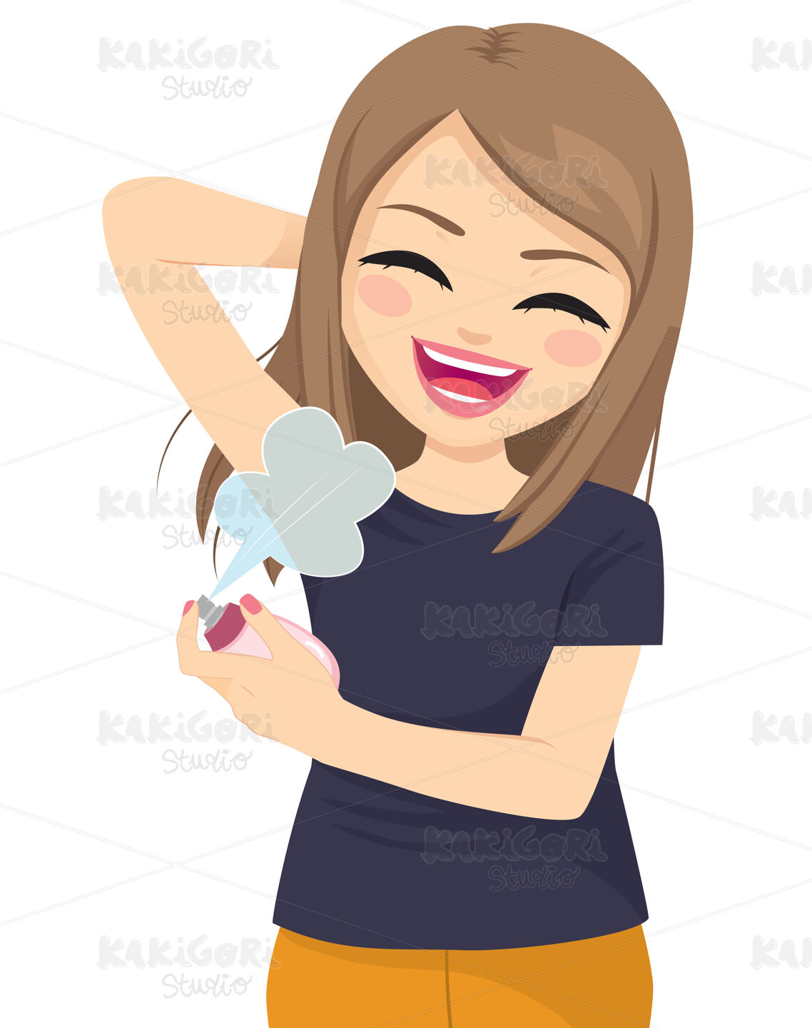 / Teenager Woman Using Cologne Clipart Vector Illustration 05134