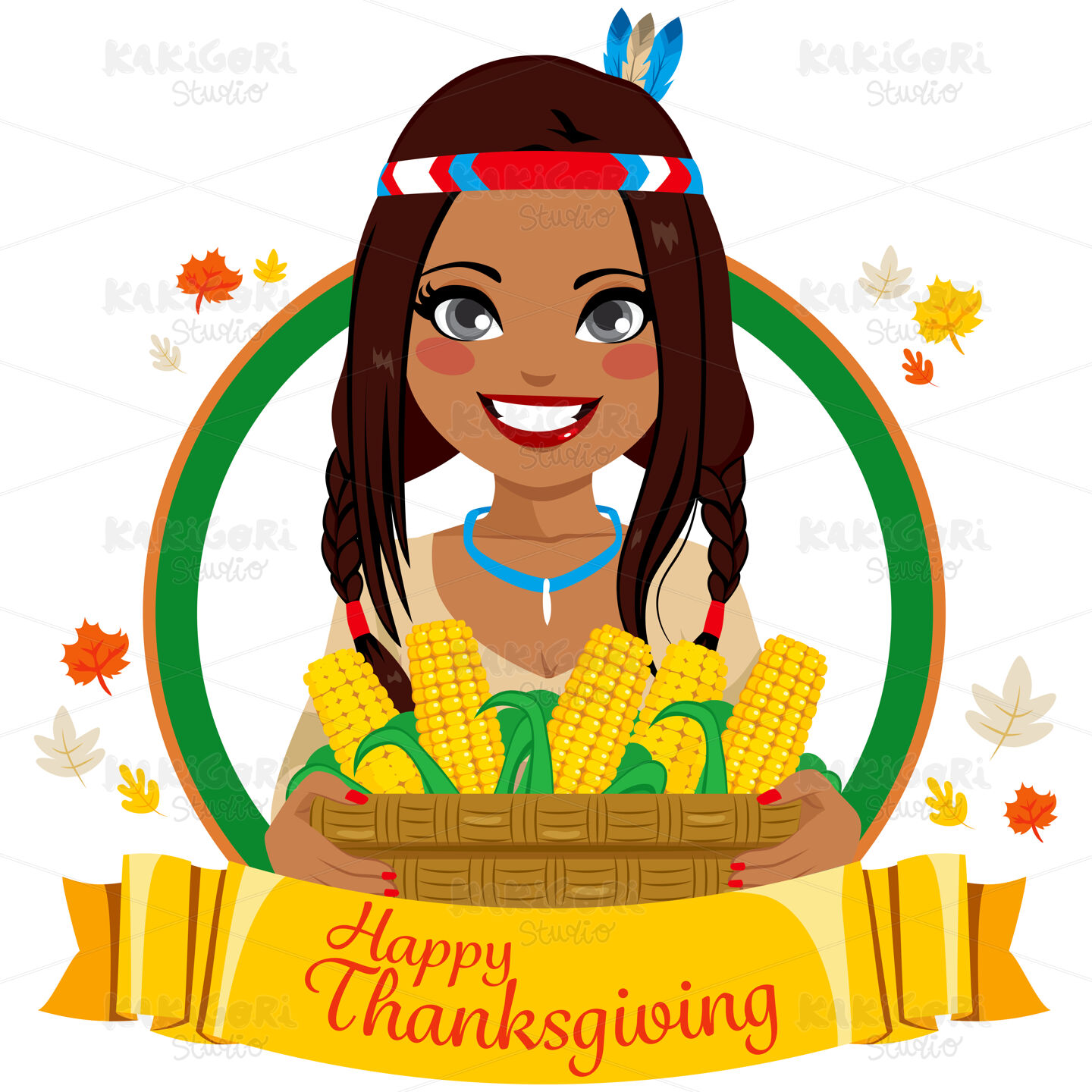 / Thanksgiving Native American Woman Clipart Vector Illustration 03173