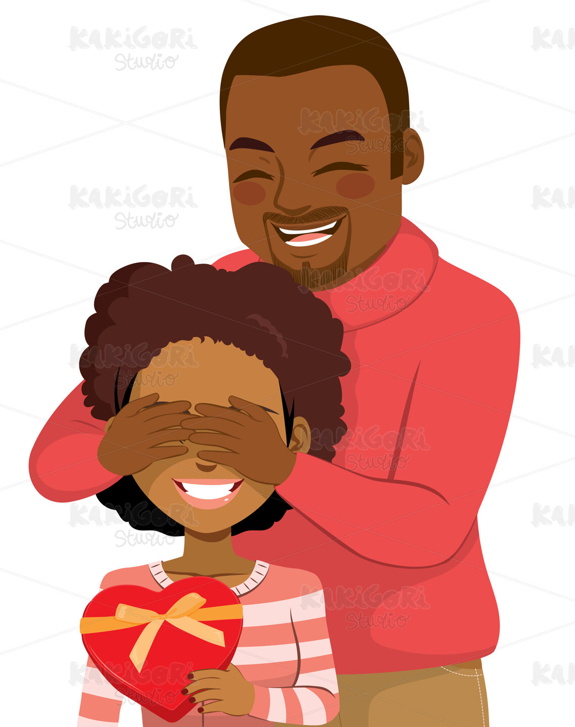 Beautiful young people of color couple on Valentine’s day sharing love with heart shape gift box