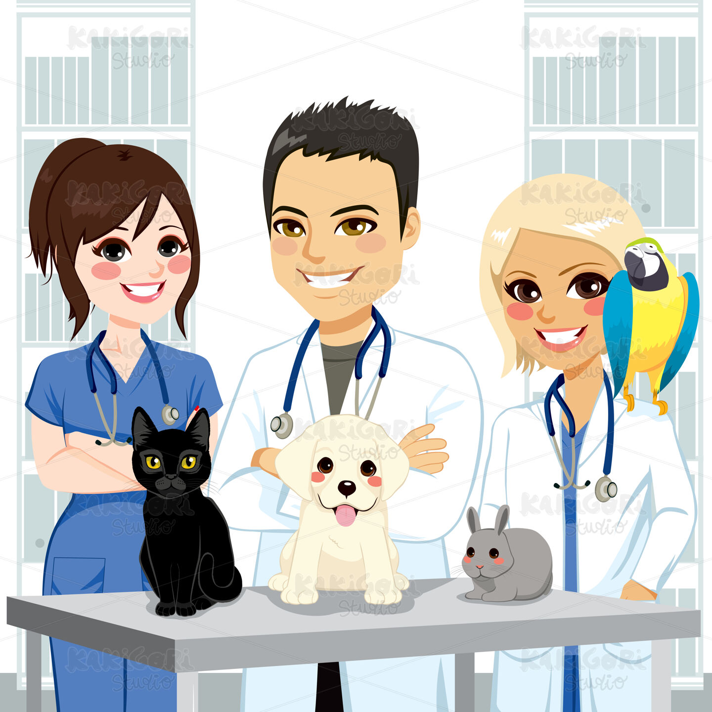 / Veterinarian Team Pets Clipart Vector Illustration 03029