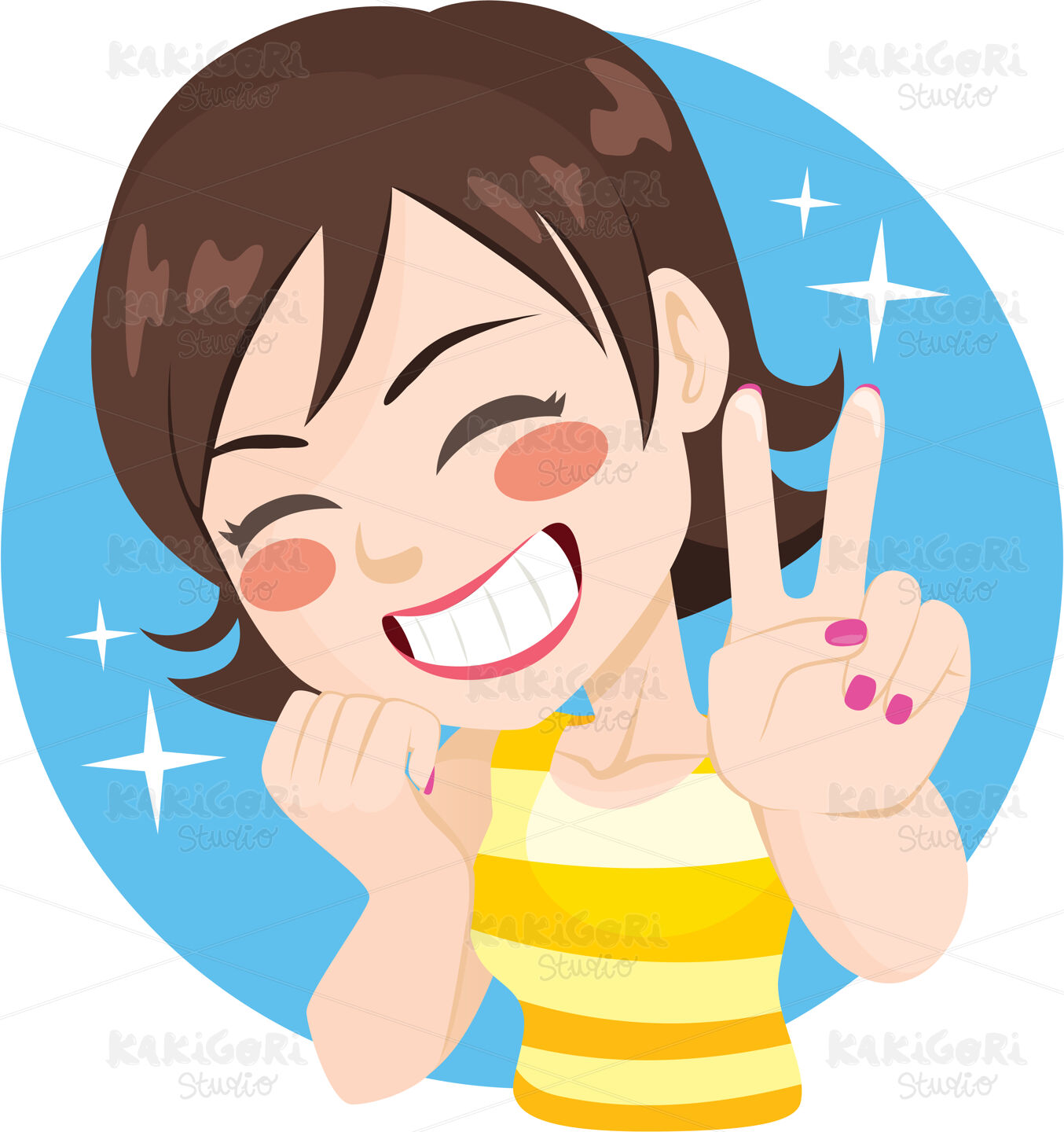 / Victory Sign Happy Woman Clipart Vector Illustration 04794