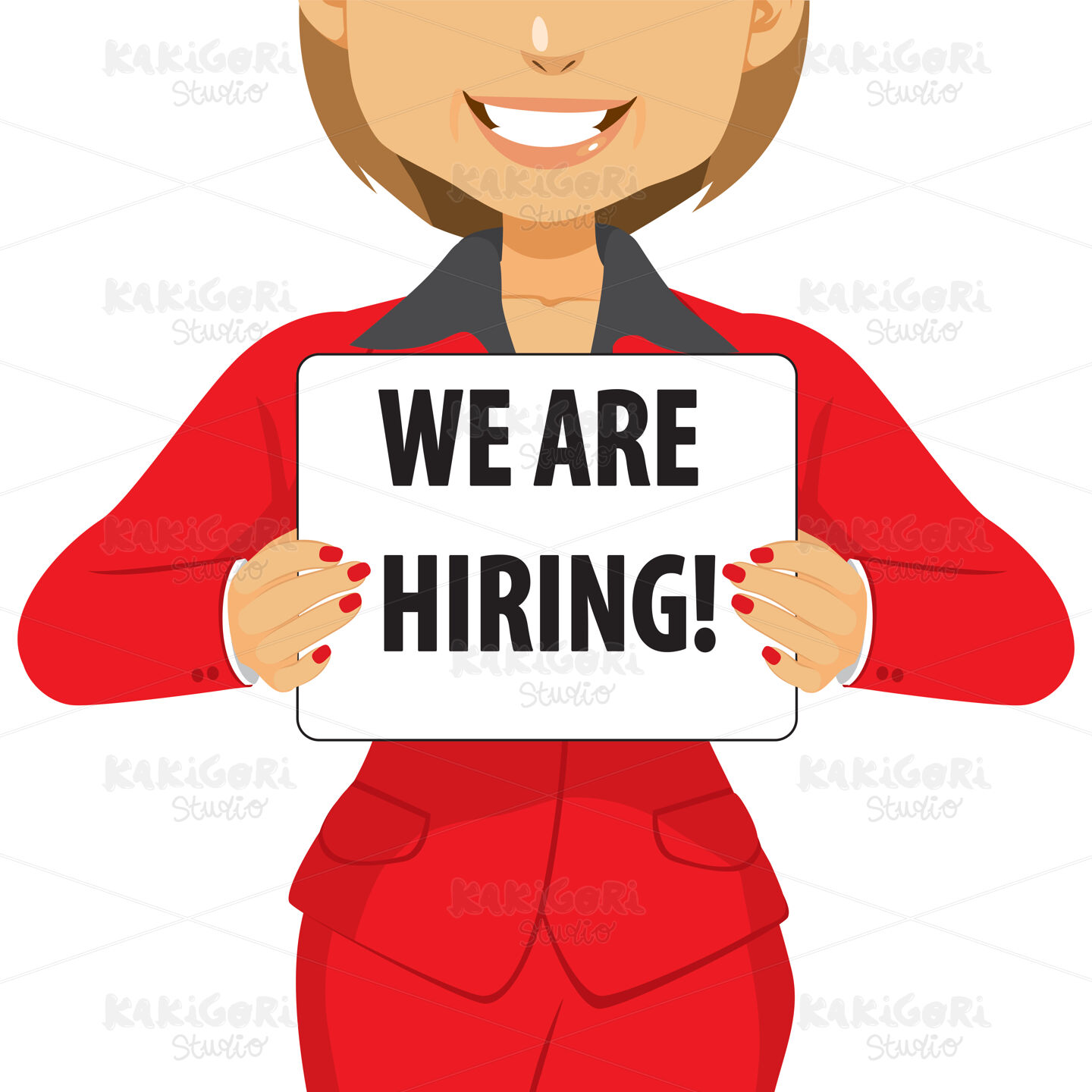 Businesswoman showing a white board with we are hiring text