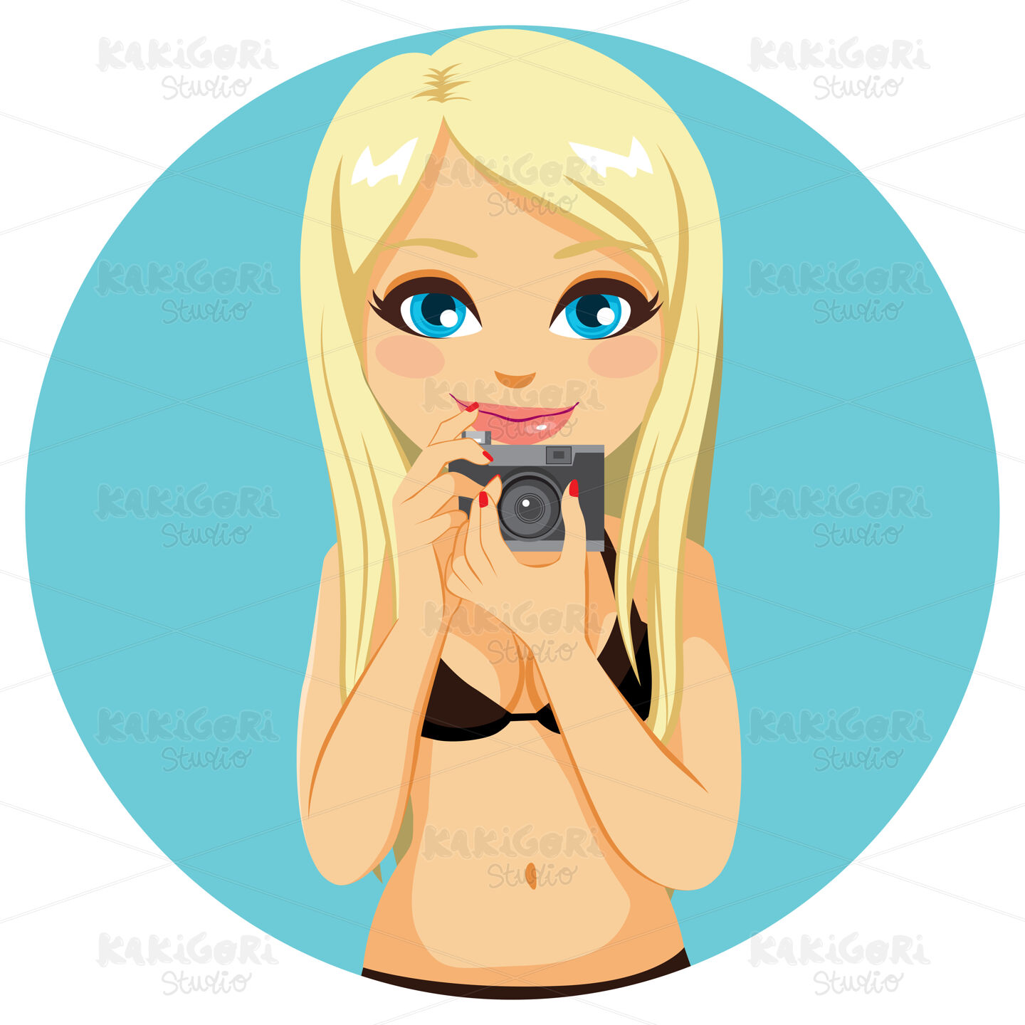 / Woman Bikini Holding Camera Clipart Vector Illustration 03628
