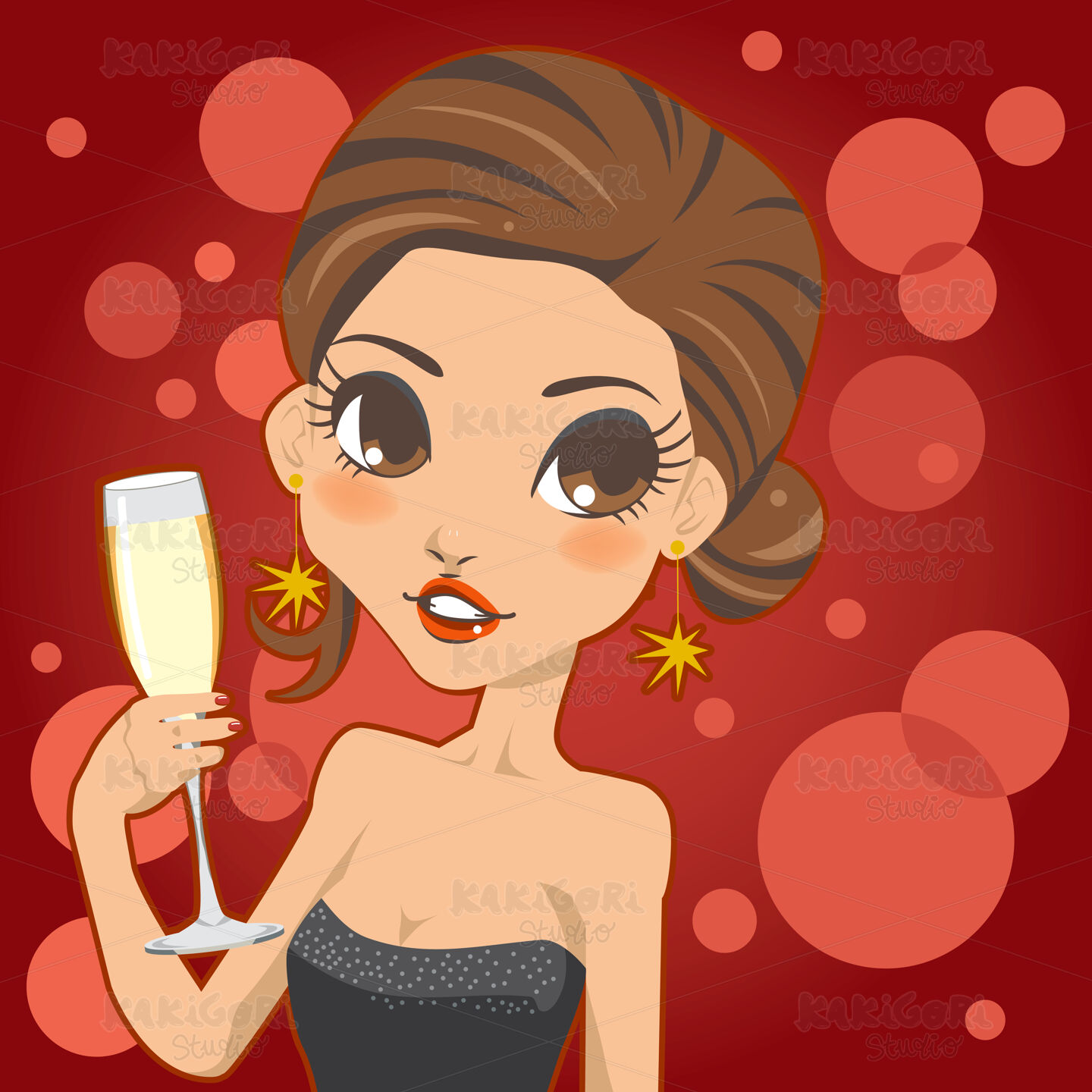 / Woman Champagne Glass Clipart Vector Illustration 00249