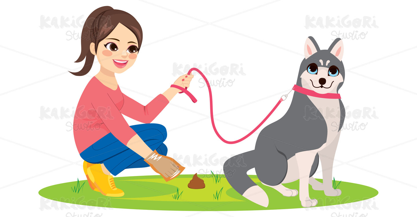 / Woman Cleaning Poo Pet Dog Clipart Vector Illustration 05147