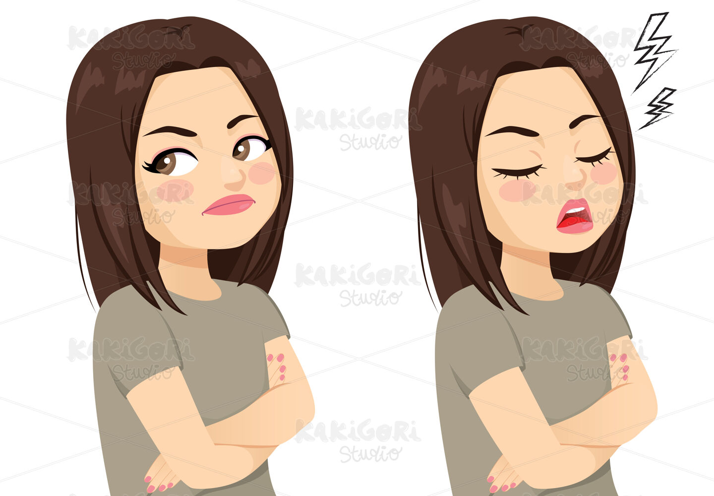 / Woman Dissatisfied Face Expression Action Clipart Vector Illustration 05021