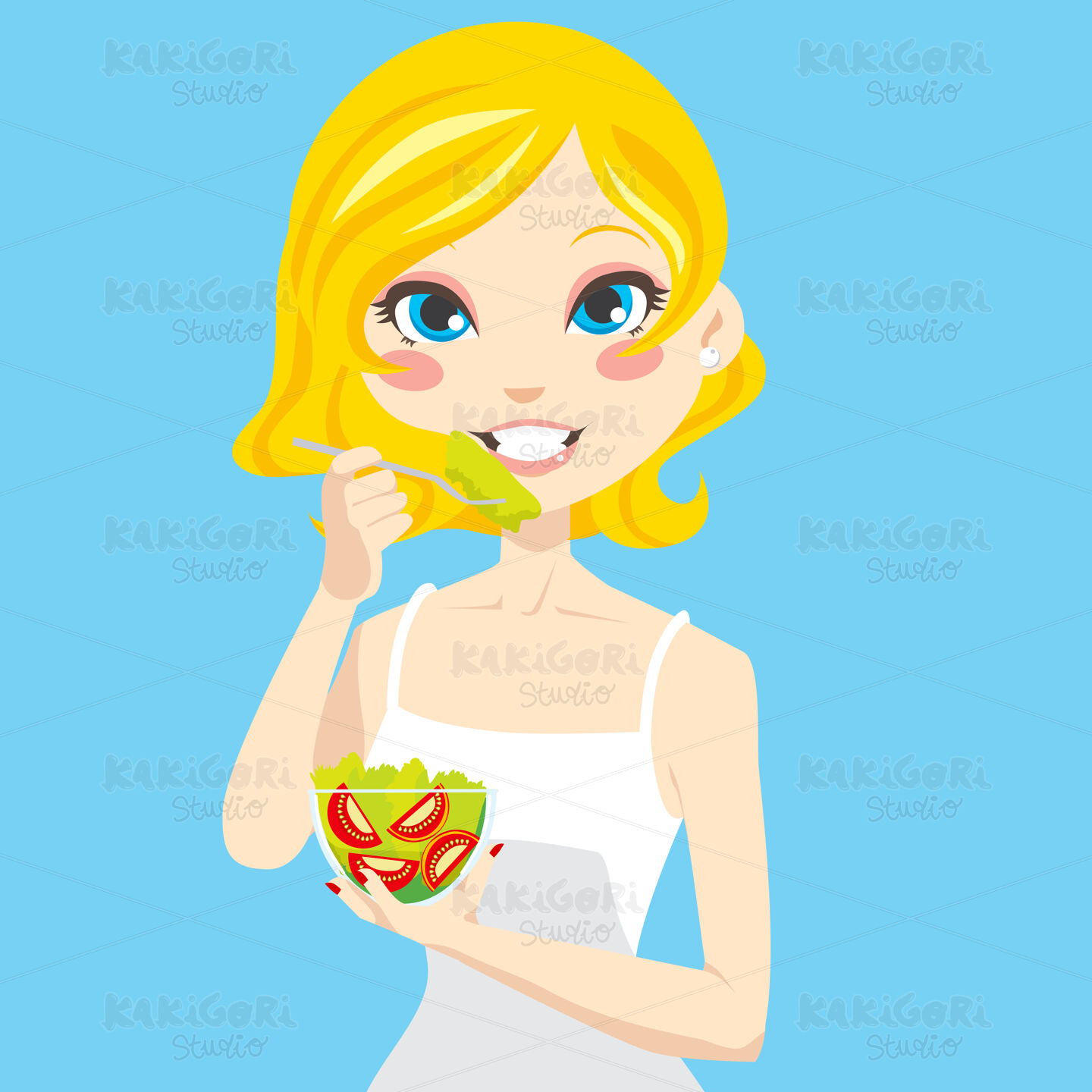 / Woman Eating Salad Clipart Vector Illustration 00397