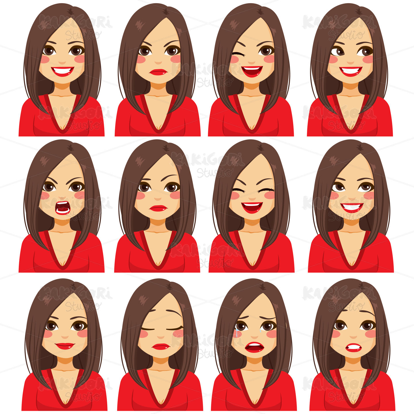 / Woman Facial Expressions Clipart Vector Illustration 04558